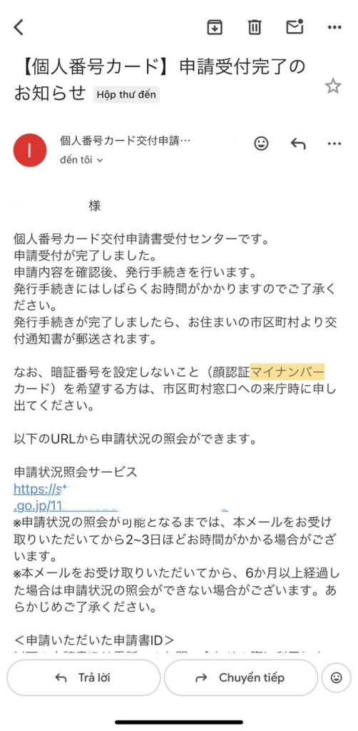 - Phiếu thông báo đăng ký thẻ 「マイナンバーカード交付申請書」