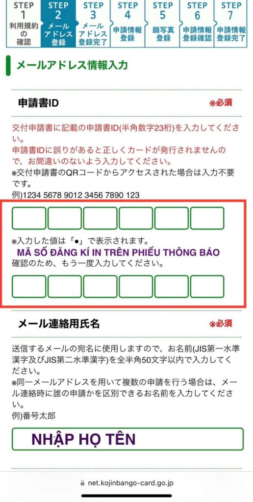 - Nhập địa chỉ email của bạn vào ô メールアドレス để chính quyền có thể gửi thông báo sau này.