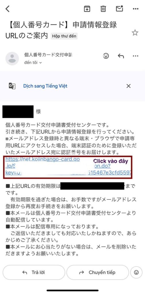 - Khi nhận được email từ hệ thống, hãy nhấn vào đường link trong thư (như hình minh họa phía dưới) để chuyển sang bước tiếp theo.