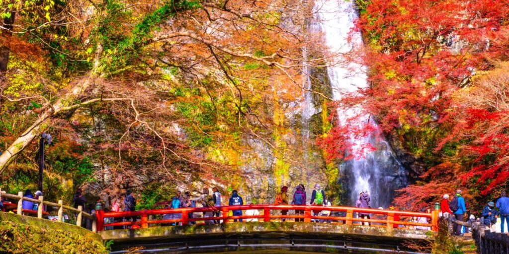 Chỉ cách trung tâm Osaka 30 phút, công viên Minoo mang lại cảm giác như lạc vào một khu rừng mùa thu. Lối đi ven suối dẫn tới thác Minoo, hai bên là hàng phong rực rỡ — cảnh sắc yên bình khó tìm giữa thành phố nhộn nhịp.