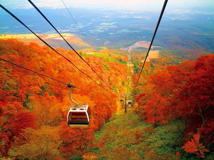 Từ cáp treo Gozaisho, bạn có thể nhìn thấy cả biển lá đỏ vàng trải dài dưới chân núi. Đây là một trong những điểm ngắm lá từ trên cao đẹp nhất Nhật, rất được các nhiếp ảnh gia yêu thích.